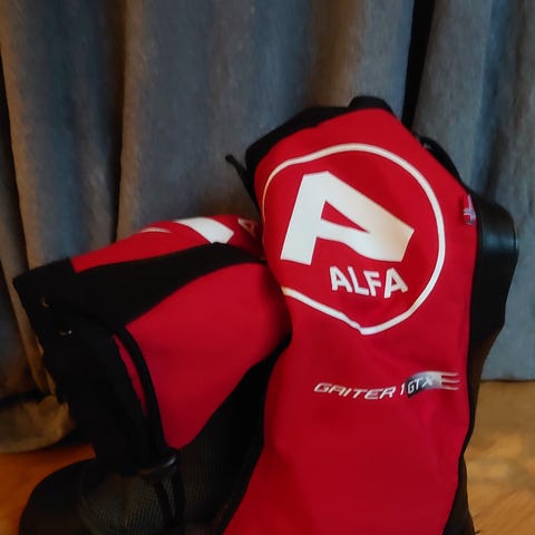 Ingen bruksmerker, oppbevart med flasker inni så de holder fasongen på gamasjen.