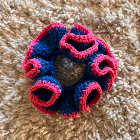 Hårstrikk scrunchie i rødt og hvitt mønster. Passer til unisex bruk og kan brukes til å samle hår i hestehale eller topp. Stoffet er lett og elastisk, og gir et mykt grep rundt håret for daglig bruk. Den er laget i Jordan, Palestinsk inspirert.