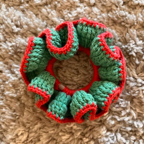 Hårstrikk scrunchie rød og hvit unisex. Palestina