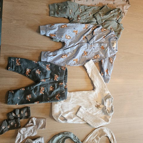 Pent brukt klespakke fra newbie, name it og hust and claire. Noen plagg er mer brukt enn andre,noen er aldri brukt. Det er ingen hull eller flekker. Kun vasket med parfymefritt vaskemiddel.