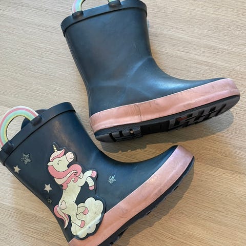 Pent brukte enhjørning støvler med regnbue i toppen. Str 24