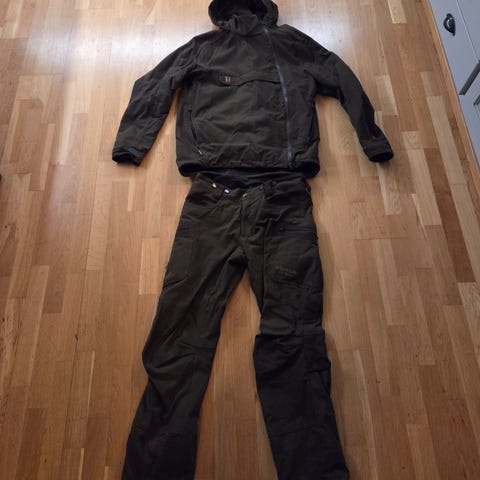 Pent brukt Härkila jaktdress bestående av jakke og bukse.