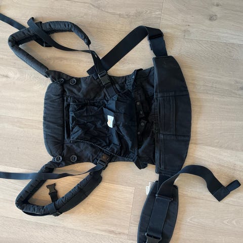 Ergobaby bæresele selges. Veldig behagelig å bæresele barnet i, og den har mange justeringsmuligheter. Lyset får selen til å se blass ut i fargen.