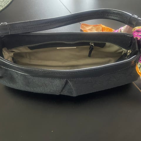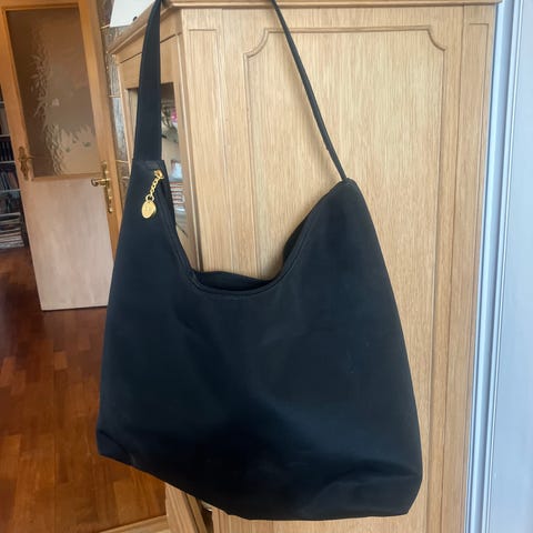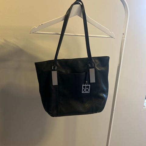 DKNY veske for dame i svart kunstlær. Modellen har to skulderremmer og metall-detaljer i sølvfarge, inkludert en avtagbar logoanheng foran. Vesken er laget i strukturert kunstlær som gir et mer robust uttrykk. Passer til daglig bruk, jobb eller enkle anledninger der man trenger en romslig håndveske/skulderveske.