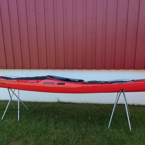 Ubrukt kano for 2 selges til ca halv pris. Med rustfri rekke / oppbevarings-rom og puter . Meget solid / glassfiber og tåler en del sjø