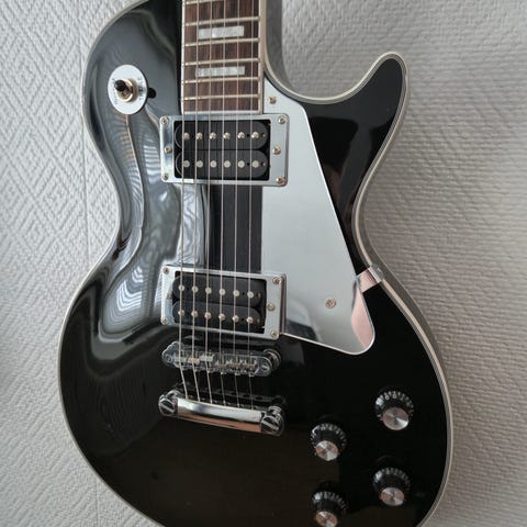 Gitaren spiller og låter helt topp med mahogni kropp og knall bra pickups, både på clean og distortion.