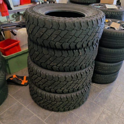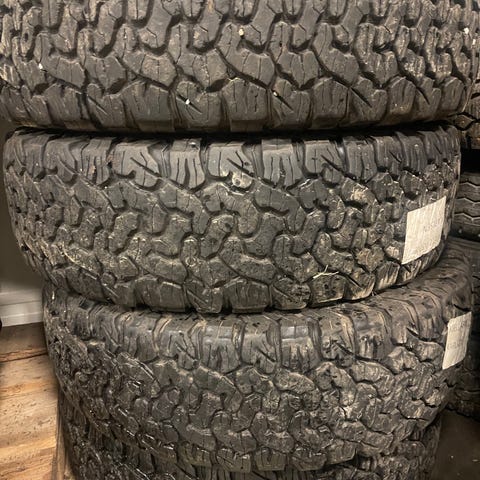 BF Goodrich All-Terrain T/A KO3 komplette hjul i dimensjon 265/65 R17. Dekkene har grovt all terrain-mønster egnet for kombinasjon av vei- og terrengkjøring. Leveres som komplette hjul montert på 17-toms aluminiumsfelger med 6 bolter, som på bildene. Passer blant annet til SUV og pickup med riktig boltmønster og dimensjon. Annen teknisk informasjon som belastnings- og hastighetsindeks fremgår av merkingen på dekkene på nærbilder. Felgene har jeg brukt på en Hilux 09mod. Dekkene kjøpte jeg i høst,(18500,- ferdig seipet),men er ikke brukt. Kun ligget i garasjen som på bildet. De er seipet. Da boir de noe bedre å kjøre på mener jeg. Kan brukes både om sommer eller vinter. Kom gjerne med bud.