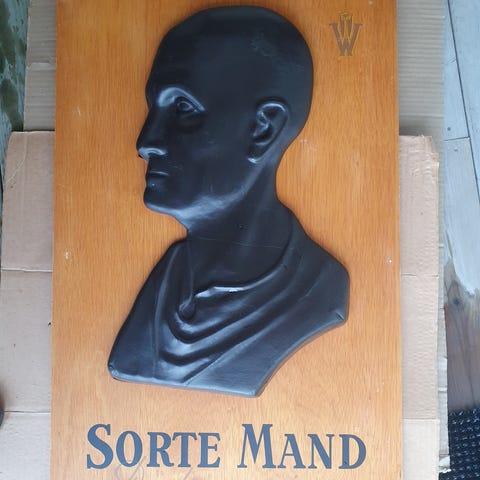 Da rydder jeg videre og dette er et EMALJESKILT fra TIEDEMANNS TOBAK med GULE FISKEREN.. Dette ble produsert på 20 eller 30 Tallet. Høyde 80 Cm og Bredde 49 Cm. Vekt er 3995 Gr. Skiltet er flatt med utstanset kant og er produsert med sjablong og silketrykk teknikk. Tenker at han som kappet dette for 60 - 70 År siden og måtte ha en metall bit til noe nok hadde tenk litt annet i dag da denne biten som mangler har en verdi på Ca. 30 000 Kr.. Men det som er igjen er et Fint skilt uten restaurering og blankt og fint så noe glans og skygge på bilder her da.