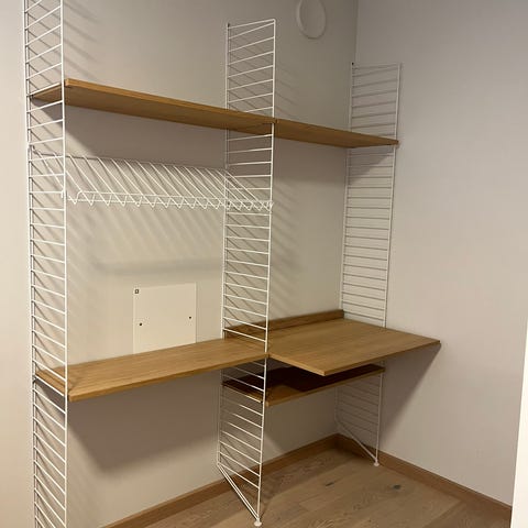 String gulvstående gavl er et produkt fra String med en allsidig og tilpasningsdyktig design, perfekt for å skape et unikt og funksjonelt hyllesystem. Gulvgavlen hviler mot gulvet og gir hyllen et luftig og elegant uttrykk, samtidig som den er robust. Selger en gulvgavl fordi jeg har endret oppsett på hyllene hjemme slik at en gavl ble overtallig.
