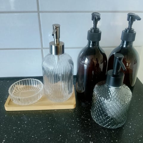 Håndhåndkler og 2 stk håndsåper