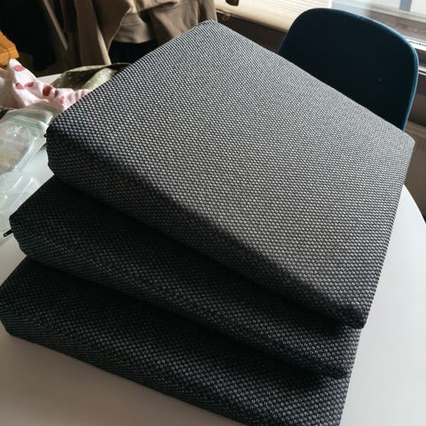 IKEA Övning fotpute i grå tekstil. Puten er formet for å gi støtte til føtter og legger når man sitter ved bord eller skrivepult. Trekket har strukturert overflate og kan tas av for vask i henhold til vaskeanvisning på lappen. Egnet til bruk i hjem, på barnerom eller ved skriveplass for ekstra komfort ved sitting.