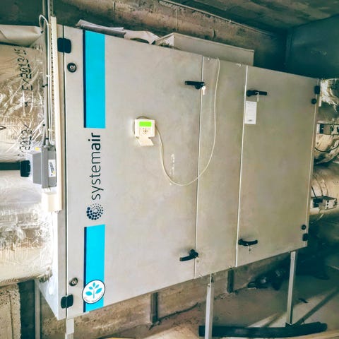 Med innebygd varmegjenvinning og elektrisk for-/ettervarme.