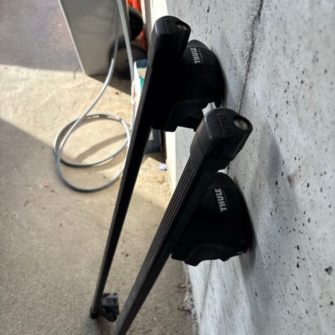 Thule takstativ med fotsett i svart. Består av to lastebøyler med integrerte føtter/fotsett for montering på bilens tak. Passer til biler som er kompatible med denne typen Thule-system, avhengig av riktig monteringskit. Egnet som base for montering av takboks, sykkelstativ eller annet taklastutstyr som er tilpasset Thule takstativ.