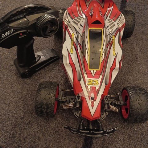 Selling one of my 1:5 gasoline rc cars ,i am not using this car anymore,so decided to sell.,.Engine is 30cc ,instaled new clutch ,Runs good .Buggy is rear wheels drive ,kit for 4wd cost +-400kr .Speed around 70-80km/h .Has some tiny scratches .Can send after vipps
