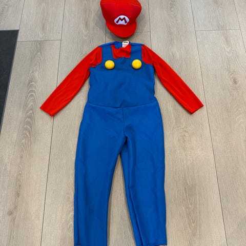 🍄🟢 Super Mario og Luigi kostymer med hatt – følger med en bart.