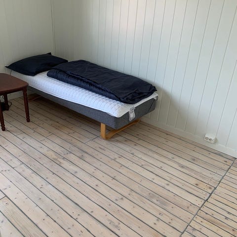 Seng brukt på gjesterom fra møbelringen. Uten overmadrass. Må bæres ned en trapp av de som henter, helst i kveld, onsdag.