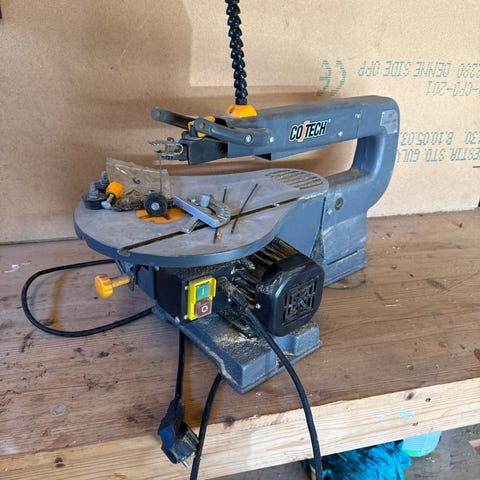 Black & Decker KS531 stikksag med effekt på 370W. Elektrisk stikksag med ledning, egnet for kapping og tilpasning av treverk og lignende materialer. Farge grønn med sort håndtak og hus. Maskinen har sagblad foran og ventilasjonsåpninger på siden av motorhuset. Passer til generelle gjør-det-selv-oppgaver i hjem og garasje der det er behov for presise kutt i plater og bord.