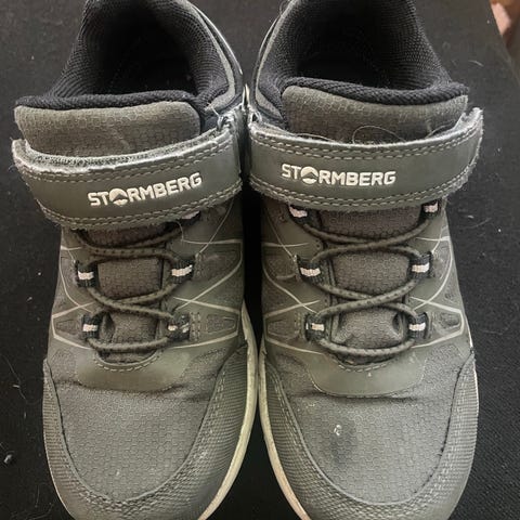Stormberg joggesko for barn, unisexmodell i svart farge. Skoene har borrelåslukking og elastiske lisser for enkel av- og påkledning. Overdelen er i tekstil og syntetisk materiale med pustende meshpartier. Yttersålen er mønstret gummi som gir godt grep på ulike underlag. Egnet som hverdagssko og til lett aktivitet for barn.
