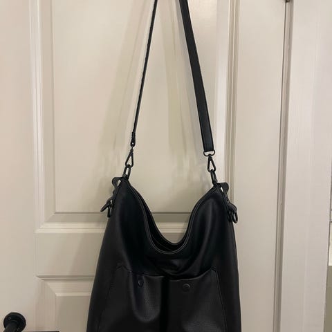 Vesken er ny, den har innerveske med 2 lommer, en med glidelås. Metallås, ett bærehåndtak( for skulder) og justerbar skulderreim.