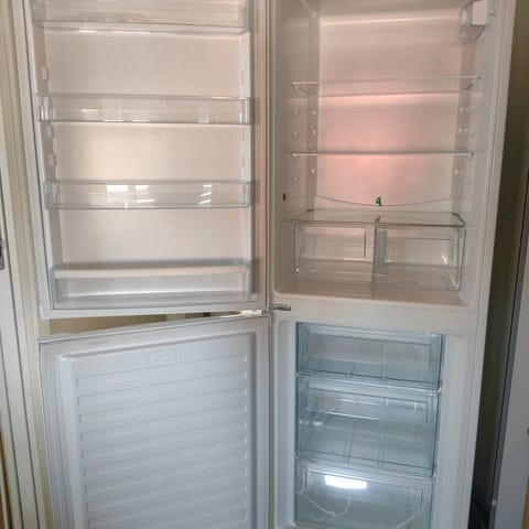 Kjøledelen har flere hyller i ståltråd og plast for oppbevaring av matvarer, samt en grønnsaksskuff nederst. Frysedelen har flere gjennomsiktige fryseskuffer som gir oversiktlig lagring av frosne varer.