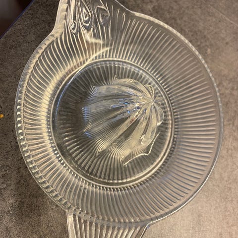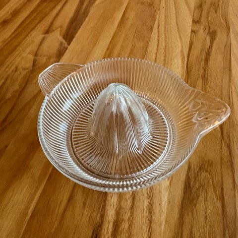 Sitronpresse / appelsinpresse av glass. Fungerer godt.