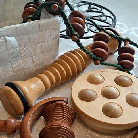 Massasjehanske med rullekuler. Justerbar stropp gjør at hansken kan festes rundt hånden.