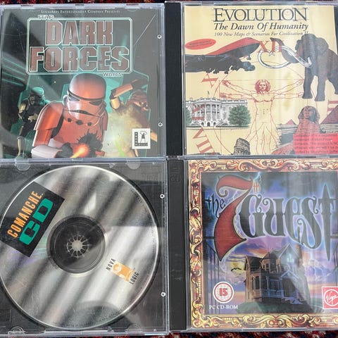 Selger en stor og ryddig samling med 256 retro / vintage PC-spill, hovedsakelig fra slutten av 90-tallet og 2000-tallet.