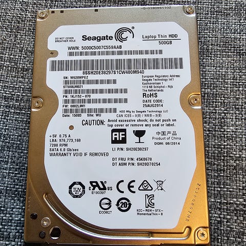 Seagate Momentus harddisk på 500 GB.