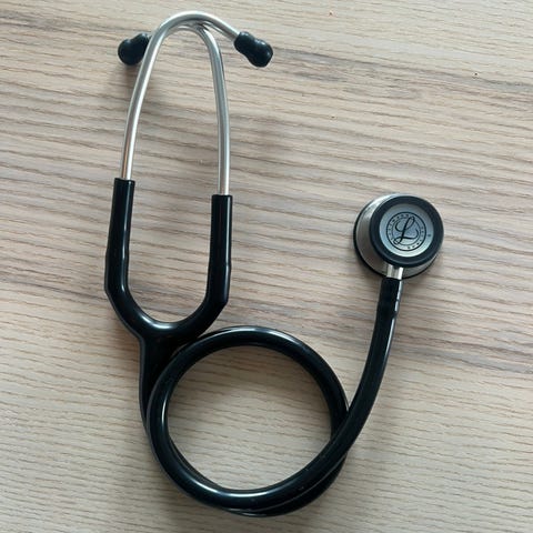 Selger 3M Littmann Classic II S.E. stetoskop i svart farge som såvidt er brukt under studier. Fremstår som ny, ingen bruksmerker. Selges da det bare blir liggende