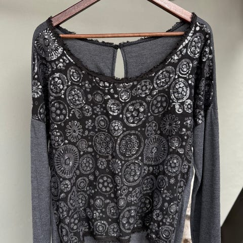 Pen, brun gjennomskinnelig topp med dekorativt motiv foran i fløyel og «kobbertråd» Hjerte i midten