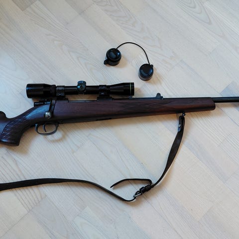 Selges med kikkertsikte (Tasco 4x32) og lyddemper.
