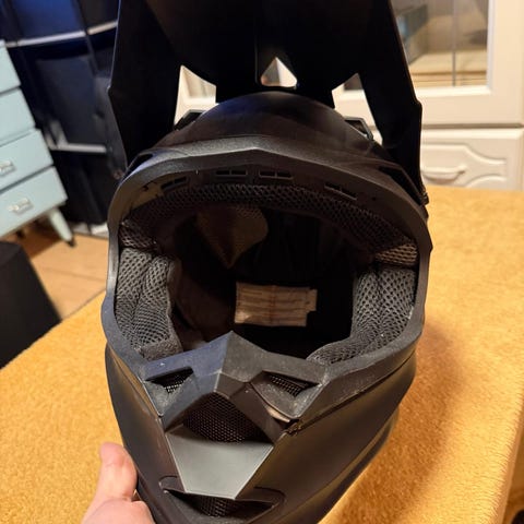 Gøyt prosjekt om noen vil installere padding inni slik den blir mere komfertabel å gå med evnt en solbrille vizor slik det ser ut som en skikkelig hjelm