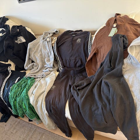 Pent brukte gensere og t-skjorter