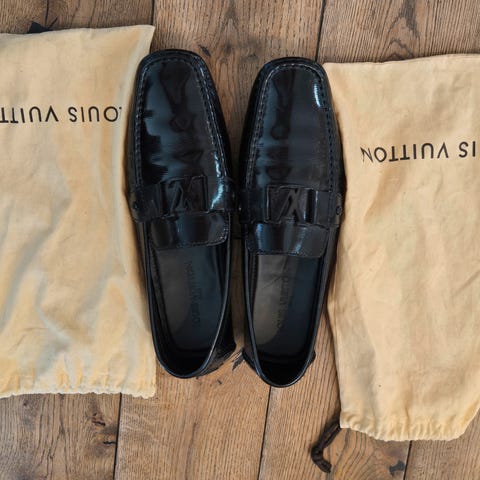 Prada mokkasiner for herre i størrelse 43. De er i mørkeblått, tykt skinn og er laget med høy kvalitets håndverk. Dette er sko som passer til det meste og kommer til å vare lenge.