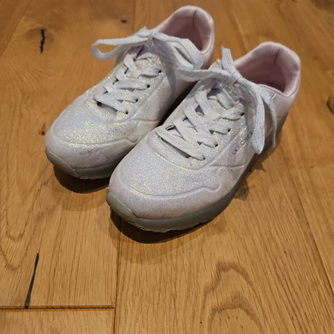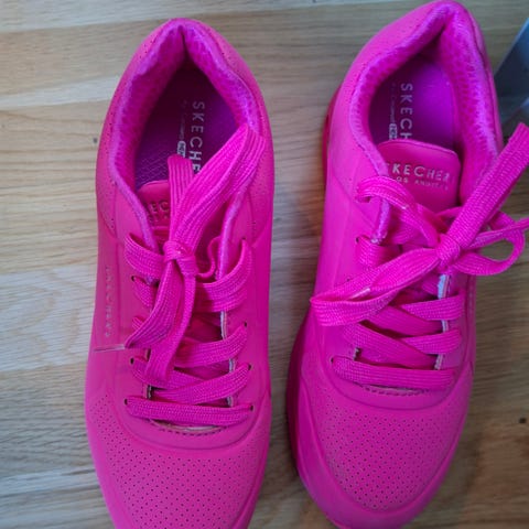 Rosa sneakers med hjerter 💗 Veldig søte og komfortable. Pent brukt og fortsatt i god stand. Perfekte til vår/sommer og passer til mange antrekk.