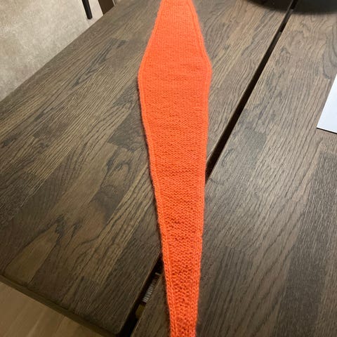 Strikket i moheirgarn. Det rosa er 135 cm og koster 150 og det lilla er 95 cm og koster 100kr