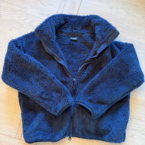 Fleecejakke i burgunder farge. Jakken har hel glidelås foran og høy krage. Mykt, pelsaktig fleecemateriale som gir god varme. Passer godt som ytterlag på milde dager eller som mellomlag under en ytterjakke.kjøpt på høøks.str L lite brukt