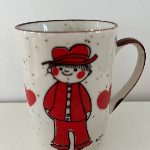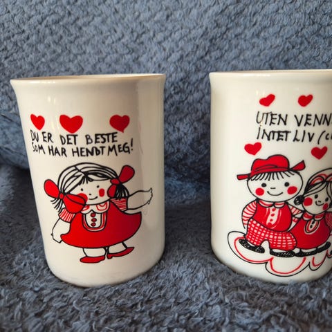 Retro fra 80 tallet .Bitte store kopper ,en til mor og en til far .8×8,5cm .Selges samlet