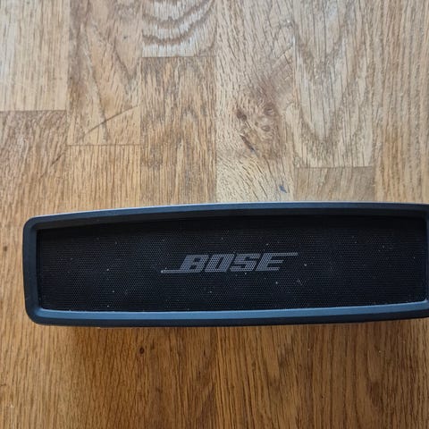 Bose SoundLink Color II bærbar høyttaler i svart. Kompakt, trådløs Bluetooth-høyttaler egnet for bruk hjemme eller på farten. Høyttaleren har gummiert overflate og betjeningsknapper på toppen. Leveres med beskyttende etui som vist på bildet. Passer til avspilling av musikk, podkaster og annet lydinnhold fra mobil, nettbrett eller andre Bluetooth-enheter.