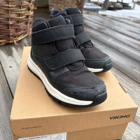 Viking vintersko for jente i størrelse 32. Skoene er svarte med grå, myk fôrkant og dekorativ sommerfugl på siden. Modellen har borrelåslukking over vristen for enkel av- og påtaking. Overdelen er i tekstil og syntetisk materiale, med kraftig yttersåle i gummi for godt grep. Egnet som varme vintersko til hverdagsbruk for barn. Med GORE TEX membran. Waterproof.