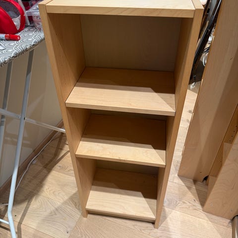 Hyllene er ikke flyttet på siden de ble montert for ca 2 år siden.