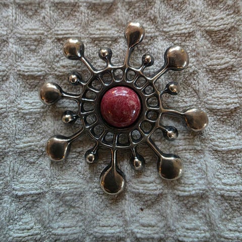 Brosje i sølv og emalje, orkide' fra serien flora, David Andersen, 1970- tallet.