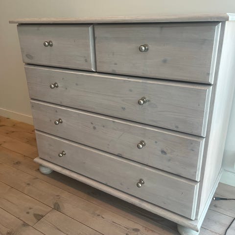 malt gammel furukomode, tror den er antikk, pen og hel og skuffene går fint ut og inn