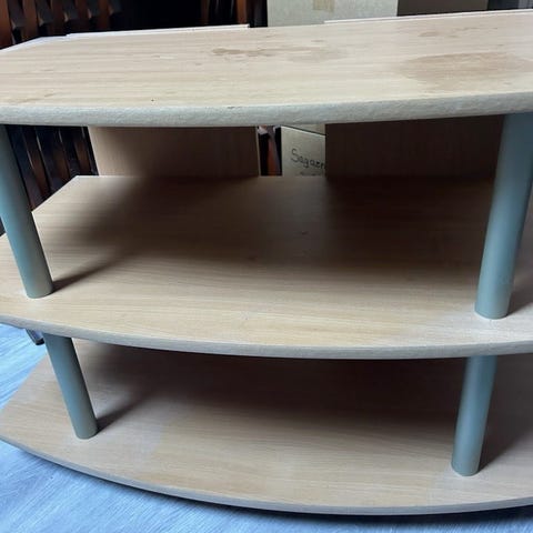 Lite furuskap, som pr i dag brukes som tv-benk, gis bort mot henting. Det har to dører i front, to rom inne i og 3 små hyller på hver side.