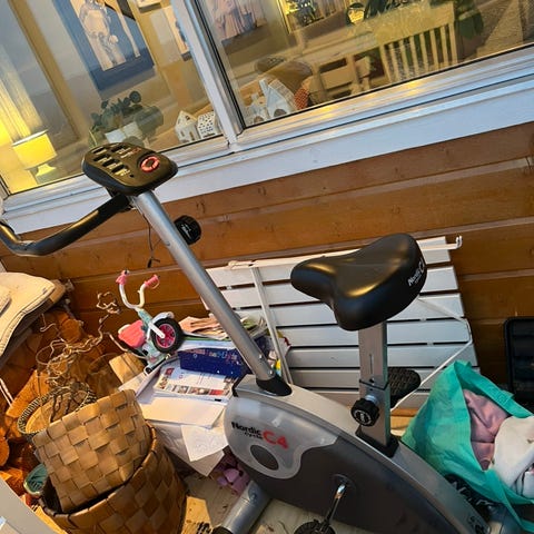 Bak setet er det en holder for manualer/håndvekter. Sykkelen er egnet til innendørstrening og kan brukes til kondisjons- og utholdenhetstrening hjemme.