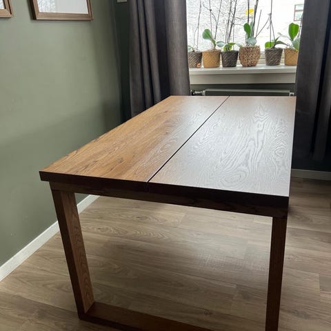 Bordet er fra Jysk. 90x200. Bordet må hentes innen fredag kveld pga flytting😃 Er et en liten superlim flekk på bordet, pusses lett bort eller kanskje det funker å fjerne med kniv😃 Ellers pent brukt i 5 mnd😀 Selges billig på grunn av superlim flekk og flytting, Kr 4000👊 Koster 6000 kr nytt😃