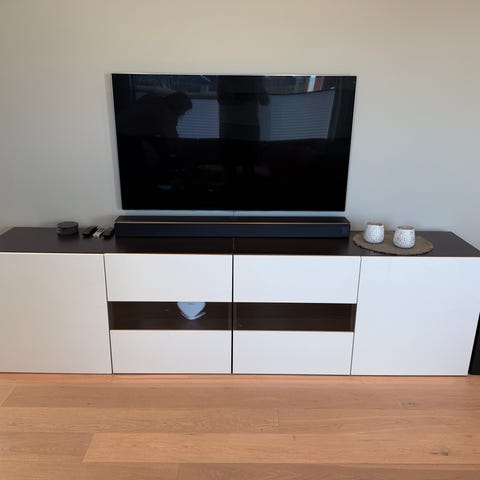 Pent brukt TV benk selges med god oppbevaringsplass.