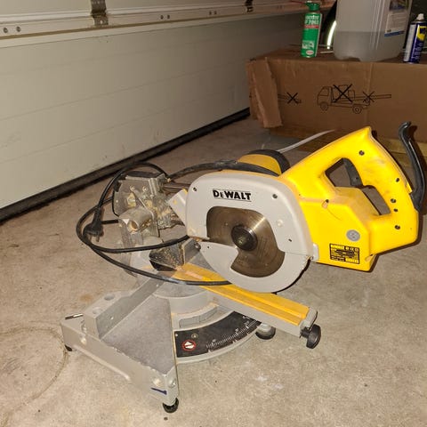 DeWalt DW705 kapp- og gjærsag med 12" (305 mm) sagblad. Modellen er en compound gjærsag, egnet for presise tverr- og gjæringskutt i treverk og lignende materialer. Driftsspenning ifølge merkeskilt er 120 V AC, 15 A, 50/60 Hz, med oppgitt hastighet på 4000 o/min. Sagen har gradert anlegg for nøyaktig innstilling av kapp- og gjæringsvinkler. Det følger med separat strømboks/spenningsomformer som vises på bildene. Sagen er beregnet for stasjonær bruk på gulv eller arbeidsbenk og kan brukes til blant annet listverk, konstruksjonstømmer og annet snekkerarbeid der det er behov for nøyaktige kutt.
