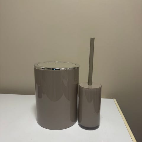 Baderomssett såpedispenser og tannbørsteholder beige