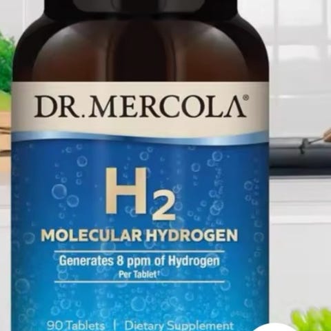 Dr. Mercola H2 Molecular Hydrogen kosttilskudd i kapselform. Produktet inneholder molekylært hydrogen (H2) og leveres i brune plastbokser med skrukork. Etiketten oppgir informasjon om innhold, anbefalt bruk og advarsler på engelsk. Egnet som kosttilskudd for voksne i henhold til produsentens anbefalinger på emballasjen. Antall kapsler per boks og eksakt sammensetning fremgår av supplement facts-feltet på etiketten.